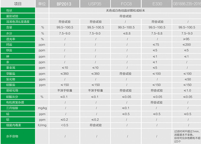 執(zhí)行標(biāo)準(zhǔn):BP2013/USP35/FCC8/E330/GB1886.235-2016